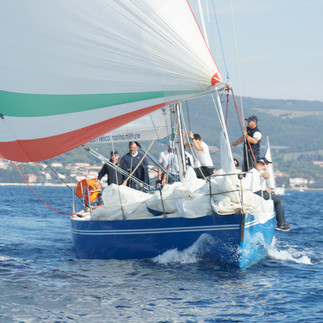 Il Gemini ha partecipato alla consueta veleggiata del Raduno (fuori competizione, per nostra fortuna...) ovviamente lasciando subito un bel po' di acqua tra la sua poppa e le altre imbarcazioni.